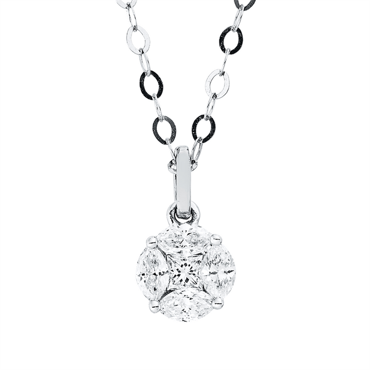 Die harmonische Kombination aus geometrischen Formen und schimmerndem Weißgold verleiht diesem Halsschmuck eine zeitlose Schönheit, die sowohl im Alltag als auch zu besonderen Anlässen begeistert. Jedes Detail wurde mit höchster Präzision gefertigt, sodass Sie ein einzigartiges Schmuckstück tragen, das Ihre Persönlichkeit unterstreicht. Genießen Sie das Gefühl von Luxus und Stil, das Ihnen dieses Collier verleiht, und lassen Sie sich von der bewunderten Ausstrahlung verzaubern.
