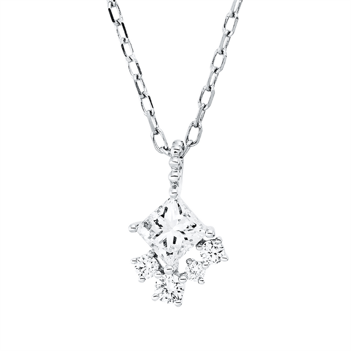 Entdecken Sie das exquisite Collier aus 18 kt Weißgold, das mit seiner eleganten Form und edlen Materialien verzaubert. Mit einer Länge von 45,7 cm schmiegt sich dieses Meisterwerk sanft um Ihren Hals und wird zum strahlenden Mittelpunkt jedes Outfits. Das Highlight bildet ein funkelnder Prinzess-Diamant von 0,32 ct, umgeben von vier weiteren Brillanten von insgesamt 0,09 ct. Ihre TW-si Qualität sorgt dafür, dass das Licht in einem Spiel aus Farben und Funken reflektiert wird, das alle Blicke auf sich zieht.