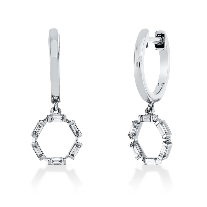 Entdecken Sie den zeitlosen Ohrschmuck aus hochwertigem 18 kt Weißgold, der durch seine exquisite Verarbeitung und die funkelnden Baguette-Diamanten besticht. Mit insgesamt 12 Steinen und einem Gesamtgewicht von 0,19 ct verleiht dieser elegante Ohrschmuck jedem Outfit einen Hauch von Glamour und Raffinesse. Die Kombination aus klassischem Design und modernem Schliff sorgt dafür, dass Sie bei jedem Anlass im Mittelpunkt stehen und die Blicke auf sich ziehen.