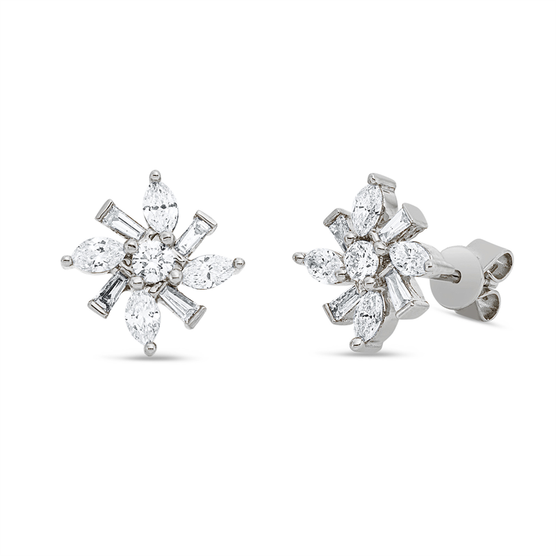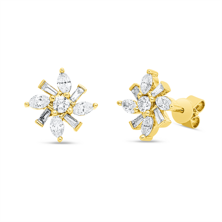 Entdecken Sie die zeitlose Eleganz unserer Ohrstecker aus 18 kt Gelbgold, die mit insgesamt 18 funkelnden Diamanten verziert sind. Diese exquisite Komposition umfasst 8 Navette-Diamanten mit einem Gesamtgewicht von 0,46 ct und 8 trapezförmige Steine mit 0,15 ct, abgerundet durch 2 brillante Diamanten von 0,12 ct. Mit einer Höhe und Breite von je 10,9 mm und einer Stärke von 2,6 mm sind diese Ohrstecker das perfekte Accessoire für jeden Anlass und verleihen Ihrem Look einen Hauch von Luxus und Raffinesse.