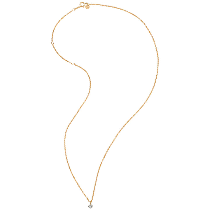 Klar, pur, bewegend – diese Halskette bringt den Solitär neu zum Strahlen. Der Diamant im Brillantschliff (wahlweise 0,16 ct, 0,25 ct oder 0,28 ct, TW-SI) ist rahmenlos gefasst und schwingt frei an einer feinen 18 Karat Kette. Durch das Laser-Finish wirkt der Edelstein wie schwerelos – ein Funkeln, das Dich bei jeder Bewegung begleitet. Die 50 cm lange Kette (verstellbar auf 45 und 42 cm, 1,0 mm Durchmesser) bringt dezente Eleganz mit maximaler Wirkung.
