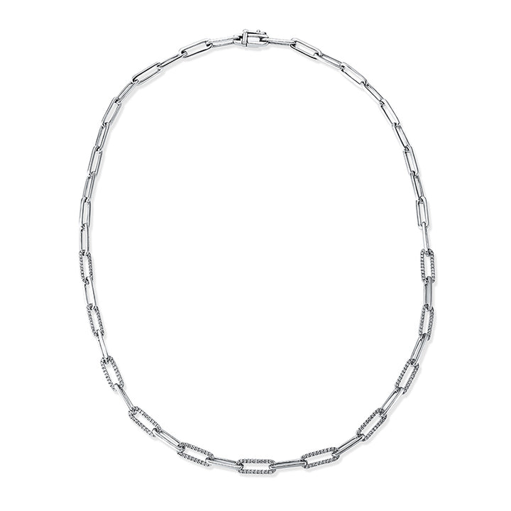 Entdecken Sie das exquisite Collier aus feinstem 18 kt Weißgold, das mit 264 schimmernden Brillanten im Gesamtgewicht von 0,94 ct veredelt ist. Jedes Detail dieses atemberaubenden Schmuckstücks wurde sorgfältig durchdacht, um Ihre Eleganz zu unterstreichen. Die Diamanten in der Farbe TW und der Reinheit si funkeln bei jedem Lichtspiel und ziehen alle Blicke auf sich. Mit einer Länge von 40,6 cm passt dieses Halsschmuck-Meisterwerk perfekt zu jedem Anlass und ergänzt Ihre Garderobe auf stilvolle Weise.