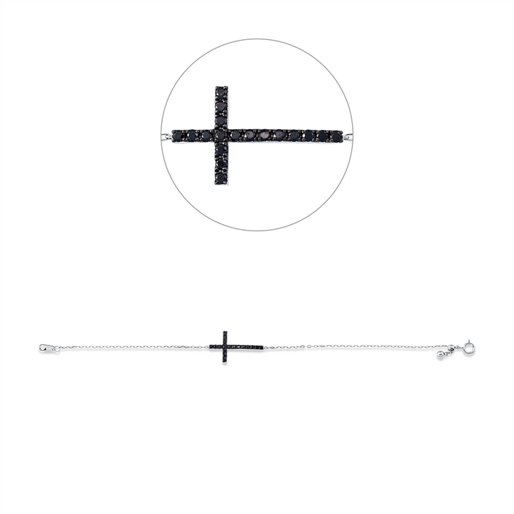 Entdecken Sie das exquisite Armband aus 18 kt Weißgold, das mit seinem eleganten Kreuz-Design und der teils schwarz rhodinierten Fassung besticht. Mit einer Breite von 12,7 mm und einer Länge von 17,8 cm ist dieses Schmuckstück nicht nur ein wahrer Blickfang, sondern auch ein Zeichen für Stil und Individualität. Die Kombination aus 18 funkelnden Brillanten mit einem Gesamtgewicht von 0,31 ct in edlem Schwarz verleiht dem Armband eine mysteriöse Eleganz, die perfekt zu jeder Gelegenheit passt.