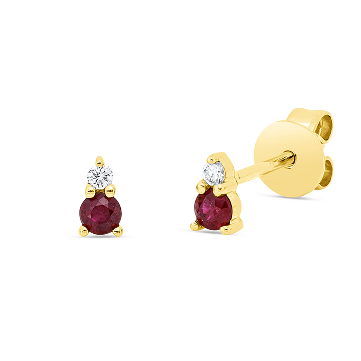 Entdecken Sie die zeitlose Eleganz unserer Ohrstecker aus 18 kt Gelbgold, die mit zwei strahlenden Brillanten von insgesamt 0,03 ct verziert sind. Diese exquisiten Ohrstecker, mit einer Höhe von 4,3 mm und einer Breite von 2,3 mm, fangen das Licht auf verführerische Weise ein und setzen funkelnde Akzente. Die Diamanten in der Farbe W und Reinheit si verleihen diesem Schmuckstück eine unvergleichliche Brillanz, während die zwei roten Rubine mit 0,13 ct für einen Hauch von Leidenschaft sorgen.