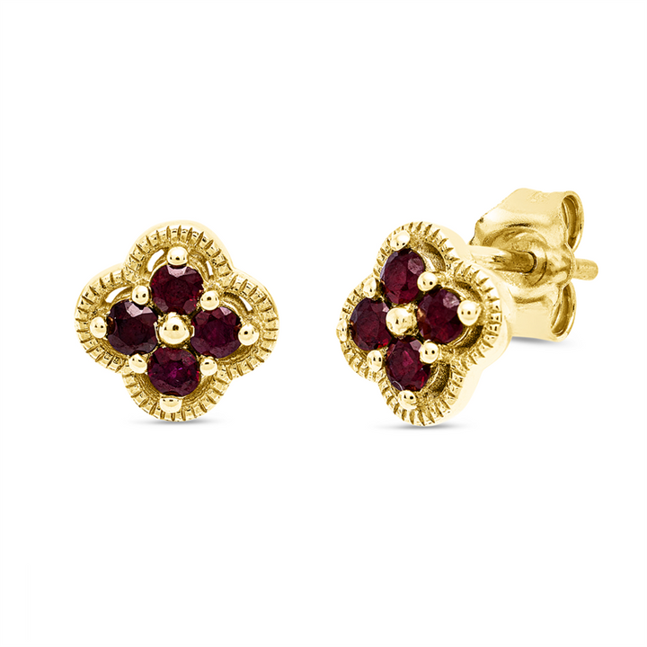 Entdecken Sie die zeitlose Eleganz der Ohrstecker aus 18 kt Gelbgold, die mit acht beeindruckenden Rubinen von insgesamt 0,32 ct verziert sind. Diese kunstvoll gestalteten Schmuckstücke haben eine Höhe und Breite von jeweils 7,8 mm und strahlen in einem leidenschaftlichen Rot, das die Blicke auf sich zieht. Ihr feines Design und das hochwertige Material machen sie zu einem unverzichtbaren Accessoire für jede stilbewusste Frau.