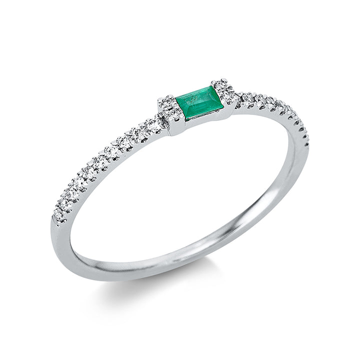 Entdecken Sie die zeitlose Eleganz unseres Ringes aus 18 kt Weißgold, der mit 24 funkelnden Brillanten von insgesamt 0,09 ct veredelt ist. Die Diamanten in der Farbe TW und Reinheit si strahlen in perfekter Harmonie und verleihen diesem Meisterwerk einen unvergesslichen Glanz. Ein exquisiter Smaragd von 0,07 ct in strahlendem Grün setzt einen atemberaubenden Akzent und erzählt Geschichten von Leidenschaft und Stil. Mit einer Höhe von 5,0 mm und einer Breite von 2,0 mm passt dieser Ring perfekt in jede Sammlung.