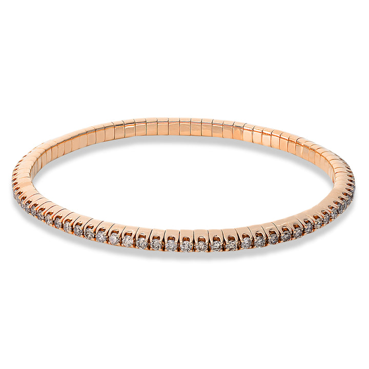 Dieses Flex-Armband in 18 Karat Roségold ist kein zartes Beiwerk – es ist dein Everyday-Statement. 81 braune Brillanten mit insgesamt 2,10 ct bringen Tiefe, Wärme und Charakter ins Spiel. Gefasst in 4er-Krappen auf einem flexiblen Band, das sich deinem Handgelenk anpasst wie deine Lieblingsplaylist deinem Mood.