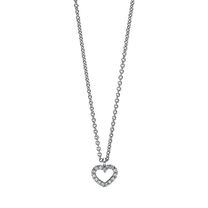 Entdecken Sie das zauberhafte Collier aus 18 kt Weißgold, das mit einem eleganten Herzdesign Ihren Look perfekt ergänzt. Mit einer Länge von 42,0 cm und einer Breite von 6,1 mm ist dieses Schmuckstück ein wahrer Blickfang. Die 15 funkelnden Brillanten mit insgesamt 0,04 ct, die in TW-si Qualität erstrahlen, verleihen dem Collier einen Hauch von Luxus und Glamour. Die feine Öse sorgt für einen angenehmen Tragekomfort und macht das Collier zu einem idealen Begleiter für besondere Anlässe oder den Alltag.