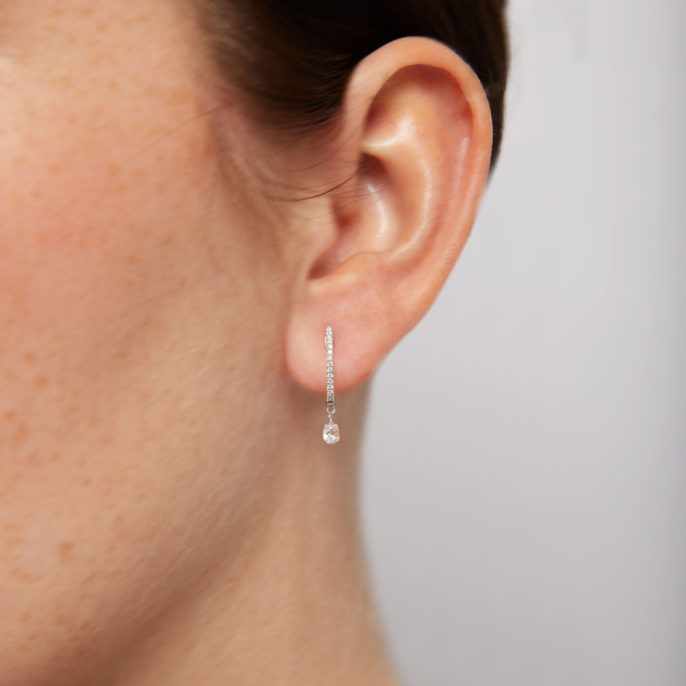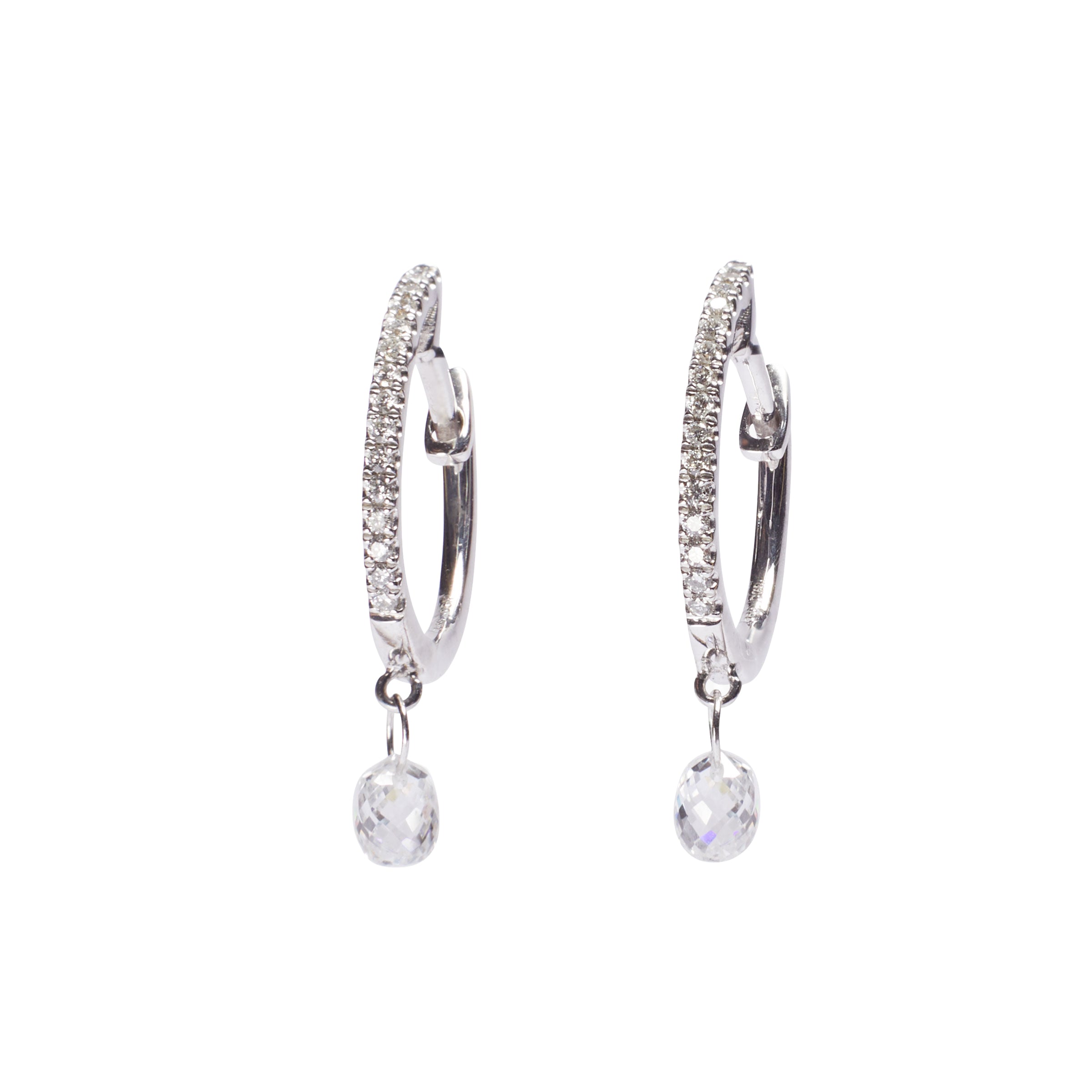 Diese Creolen machen keine halben Sachen: Fein besetzt mit funkelnden Brillanten (0,08 ct, TW-SI) und gekrönt von einem frei hängenden Diamanten im Briolette-Schliff (0,20 ct, TW-VS), sorgen sie bei jeder Bewegung für subtilen Glam. Elegant, verspielt, absolut tragbar – ein Look, der im Alltag genauso strahlt wie am Abend.