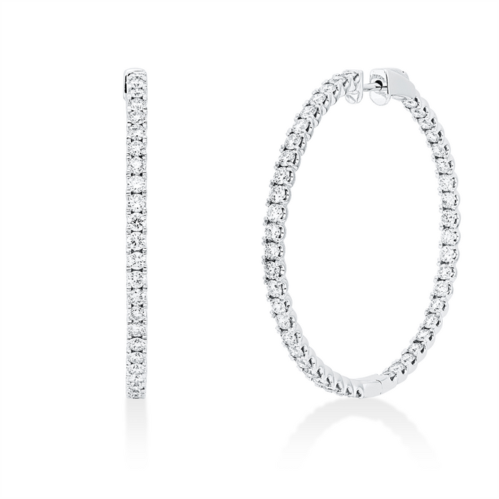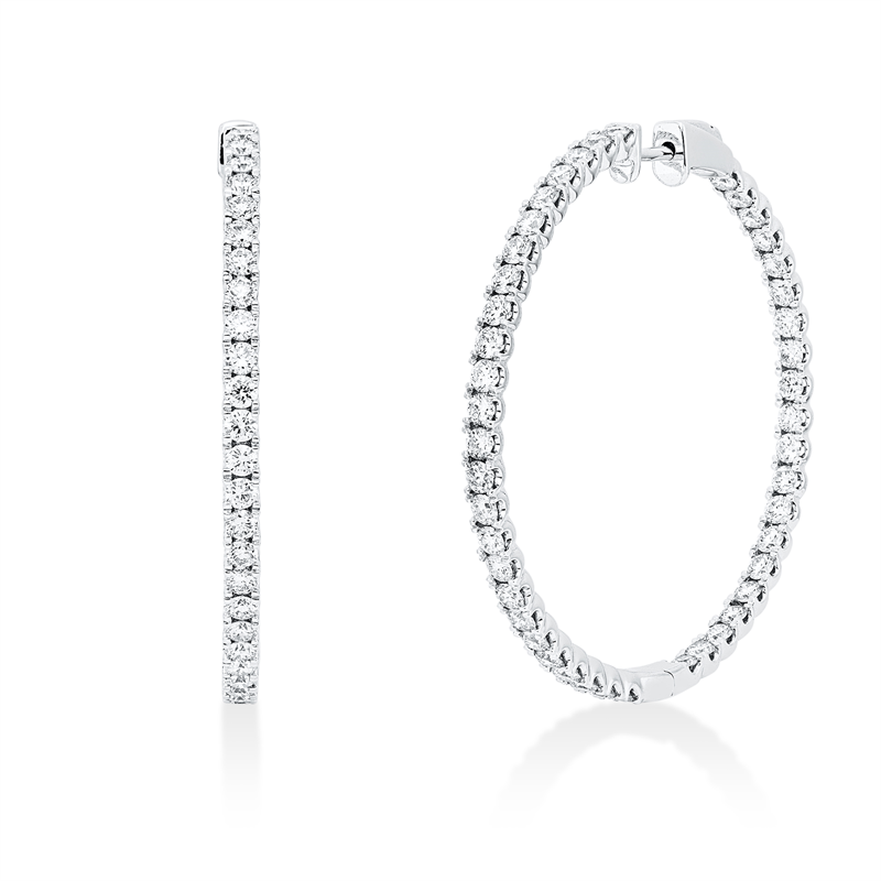 Entdecken Sie die zeitlose Eleganz der Creolen aus 18 kt Weißgold, die mit insgesamt 90 strahlenden Brillanten von 2,89 ct verziert sind. Diese exquisite Kombination aus hochwertigem Material und meisterhaftem Handwerk macht die Ohrringe zu einem unvergesslichen Accessoire für jeden Anlass. Mit einer Höhe von 37,8 mm und einer Breite von 37,1 mm fügen sie sich perfekt in Ihr Schmuckrepertoire ein und verleihen jedem Outfit einen Hauch von Glamour und Raffinesse.