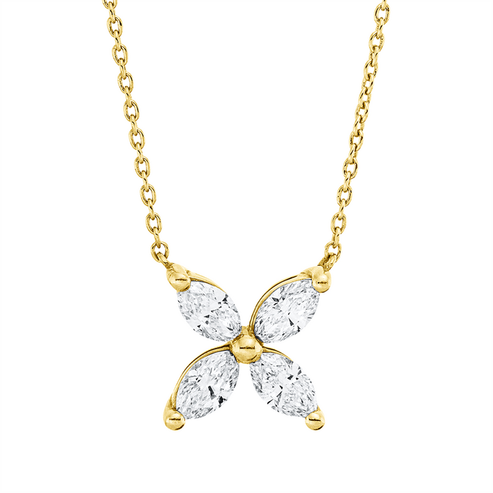 Entdecken Sie unser exquisit gestaltetes Collier aus feinstem 18 kt Gelbgold, das nicht nur ein schlichtes Schmuckstück, sondern ein wahres Meisterwerk ist. Mit einer Länge von 42 cm umschmeichelt es sanft den Hals und verleiht jedem Outfit eine elegante Note. Die vier kunstvoll geschliffenen Navette-Diamanten mit einem Gesamtgewicht von 0,84 ct funkeln in einem strahlenden Farbton der Reinheit si und Farbqualität F, die die Sinne betören und den Träger in ein strahlendes Licht tauchen.
