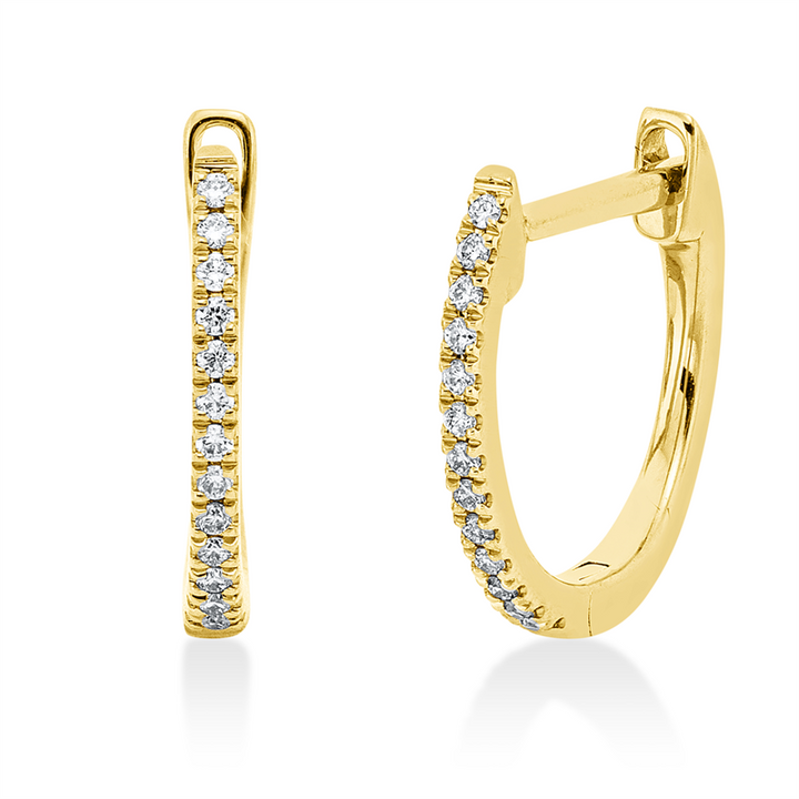 Entdecken Sie die zeitlose Eleganz unserer Creolen aus 18 kt Gelbgold, die mit 26 funkelnden Brillanten von insgesamt 0,06 ct verziert sind. Diese exquisiten Ohrstecker strahlen nicht nur Luxus aus, sondern verleihen jedem Outfit eine besondere Note. Mit einer Höhe von 10,9 mm und einer Breite von 11,0 mm sind sie die perfekte Wahl für die moderne Frau, die Stil und Schönheit schätzt. Das feine Legierungsgewicht von 1,19 g sorgt dafür, dass Sie den ganzen Tag über bequem und stilvoll auftreten können.