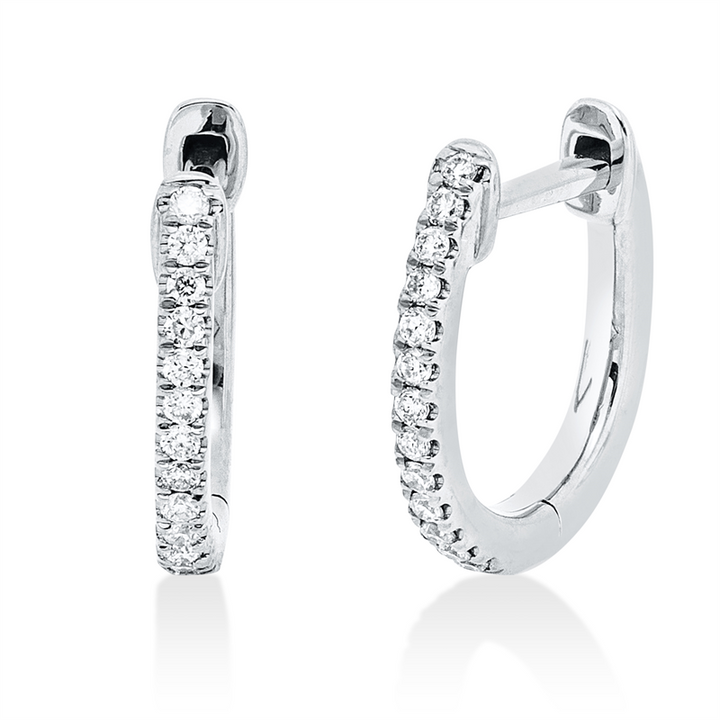 Entdecken Sie die zeitlose Eleganz der Creolen aus feinstem 18 kt Weißgold. Diese exquisiten Ohrringe sind mit 26 funkelnden Brillanten von insgesamt 0,08 ct besetzt, die in der hochwertigen TW-si Qualität strahlen. Ihr modernes Design vereint schlichte Schönheit mit einem Hauch von Glamour und macht sie zum idealen Accessoire für jede Gelegenheit. Ob im Büro oder beim festlichen Anlass – diese Creolen sind der perfekte Begleiter für die moderne Frau.