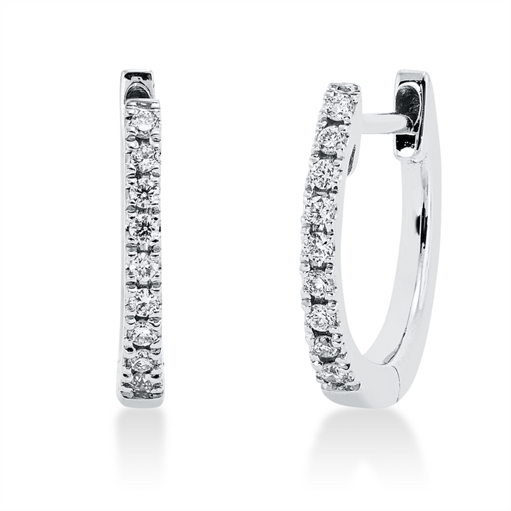 Entdecken Sie die zeitlose Eleganz unserer Creolen aus 18 kt Weißgold, die mit 18 funkelnden Brillanten im Gesamtgewicht von 0,08 ct verziert sind. Diese exquisiten Ohrringe sind nicht nur ein Schmuckstück, sondern ein Statement für die moderne Frau, die Wert auf Stil und Qualität legt. Mit einer feinen TW-si Farb- und Reinheitsbewertung strahlen diese Diamanten in einem sanften Licht, das jeden Look perfekt ergänzt und Ihre natürliche Schönheit unterstreicht.
