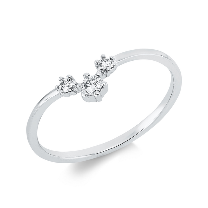 Entdecken Sie den bezaubernden Ring aus 18 kt Weißgold, der mit drei funkelnden Brillanten von insgesamt 0,10 ct verziert ist. Dieser exquisite Schmuckstück vereint elegantes Design und hochwertige Materialien in perfekter Harmonie. Die TW-si Qualität der Diamanten sorgt für ein strahlendes Funkeln, das Ihre Persönlichkeit unterstreicht und jedem Outfit einen Hauch von Glamour verleiht. Mit einer Weite von 54 passt dieser Ring perfekt an Ihren Finger und wird schnell zu Ihrem Lieblingsaccessoire.