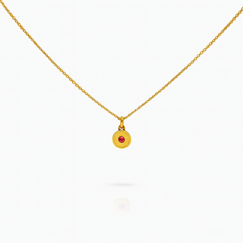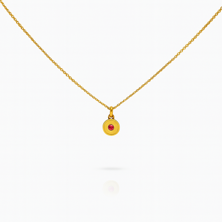 Trag, was zählt – nicht, was glänzt. Diese Kette macht keine großen Ansagen – sie ist eine. Der runde Anhänger aus purem 24 Karat Echtgold trägt in seiner Mitte deinen persönlichen Geburtsstein. Jeder Stein steht für einen Monat – limitiert, bedeutungsvoll und so individuell wie du. Die feine 22 Karat Goldkette ist 1 mm stark, stufenlos tragbar auf 42, 45 oder 50 cm – je nach Mood, Layering-Laune oder Outfit-Vibe.