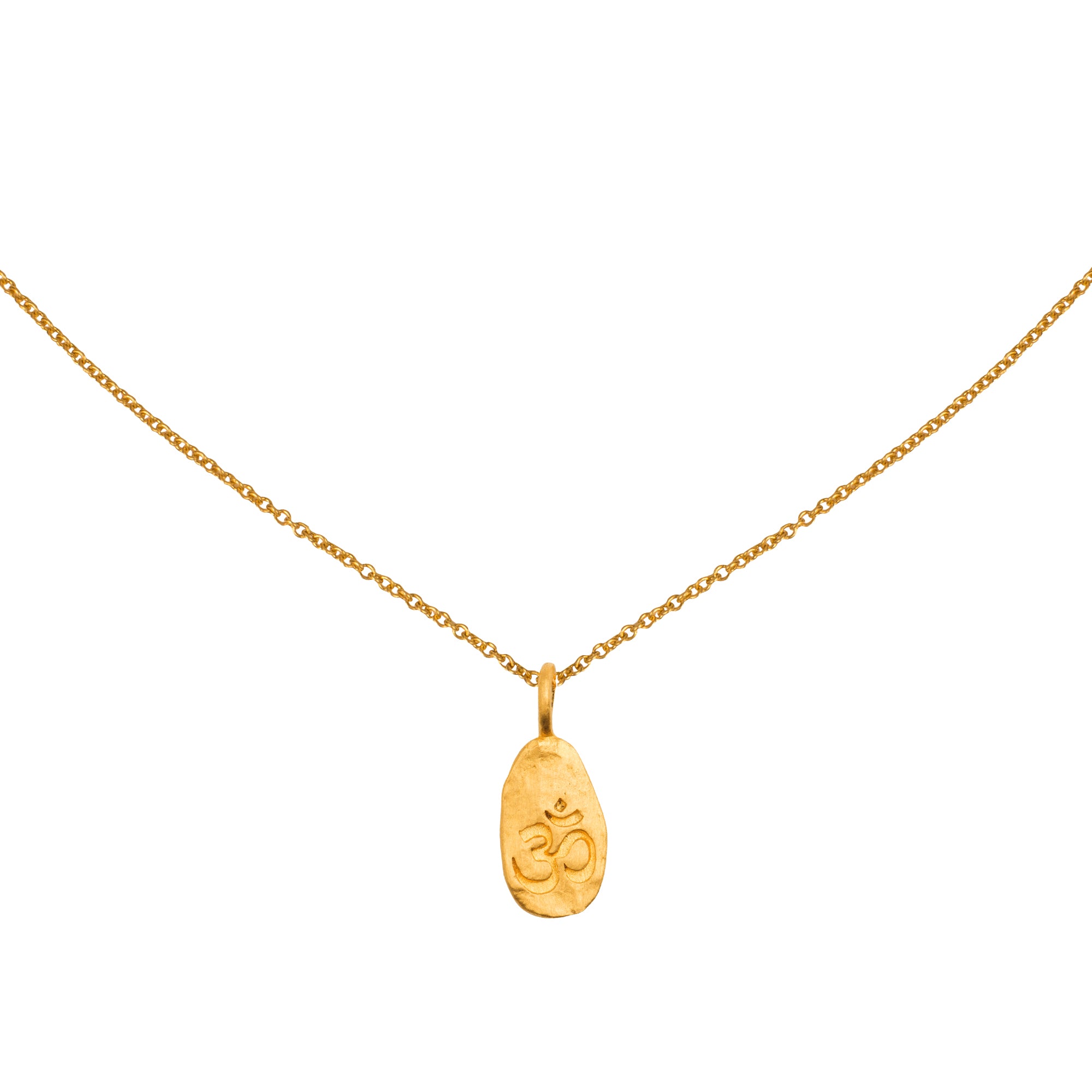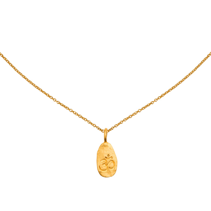 OM – mehr als nur ein Zeichen, es ist ein Zustand. Dieses Symbol steht für Einheit, Balance und die Verbindung von Körper, Geist und Seele. Gefasst in einem Nugget aus 24 Karat purem Gold, trifft kraftvolle Bedeutung auf archaische Eleganz. Mit ca. 17 x 6 mm ist das Piece ein stilles Statement mit Tiefe. Getragen an einer feinen 22 Karat Gelbgold-Kette mit 1,0 mm Durchmesser, längenverstellbar auf 50, 45 oder 42 cm, begleitet es Dich meditativ durch Deinen Alltag.