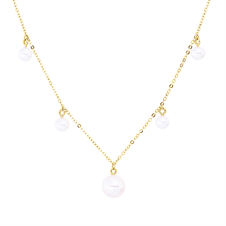 Entdecken Sie das exquisite Collier aus feinstem 18 kt Gelbgold, das sich durch seine elegante Einfachheit auszeichnet. Mit einer Länge von 45,7 cm umschmeichelt es sanft den Hals und verleiht jedem Outfit eine edle Note. Die sorgfältige Verarbeitung und das edle Material sorgen dafür, dass dieses Schmuckstück sowohl im Alltag als auch zu besonderen Anlässen glänzt. Die harmonische Kombination aus Gelbgold und den sieben strahlenden SW weißen Perlen mit einem Durchmesser von 4 mm lässt Ihr Dekolleté erstrahlen und zieht alle Blicke auf sich.