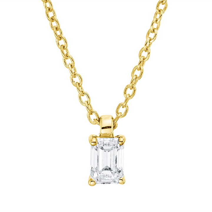 Entdecken Sie das exquisite Collier 4er-Krappe, ein zeitloses Schmuckstück aus glänzendem 18 kt Weißgold. Mit einer Länge von 45,0 cm umschmeichelt es elegant den Hals und verleiht jedem Outfit einen Hauch von Luxus. Der 1 Smaragdschliff-Diamant von 0,16 ct, in der hochwertigen Farbe TW und Reinheit si, funkelt bei jeder Bewegung und zieht bewundernde Blicke an. Die raffinierte 4er-Krappe-Fassung garantiert nicht nur Sicherheit, sondern setzt den Stein optimal in Szene.