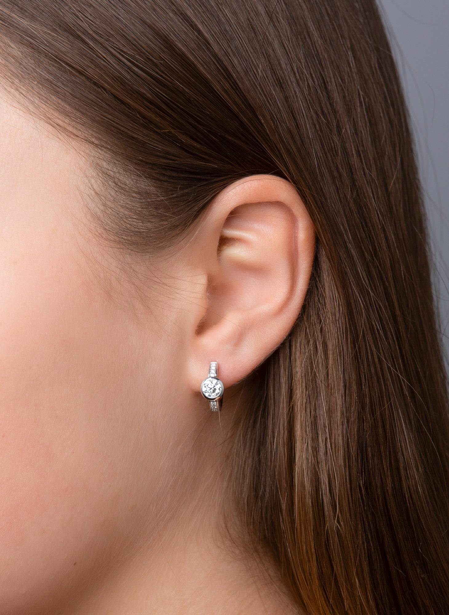 Solitaire mit Besatz Creolen Weißgold 14kt 1,1ct