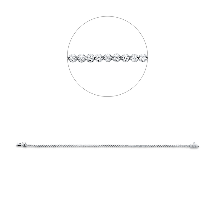 Jeder Blick auf dieses Schmuckstück wird von der perfekten Kombination aus Hochwertigkeit und Schlichtheit verzaubert. Das leichte Legierungsgewicht von 4,58 g sorgt für einen angenehmen Tragekomfort, während die filigrane Verarbeitung die Handwerkskunst unterstreicht. Dieses Armband ist mehr als nur ein Accessoire – es ist ein Statement für Stil und Raffinesse. Lassen Sie sich von der Magie der Diamanten und dem Glanz des Weißgoldes verführen und machen Sie dieses Meisterwerk zu Ihrem persönlichen Lieblingsstück.