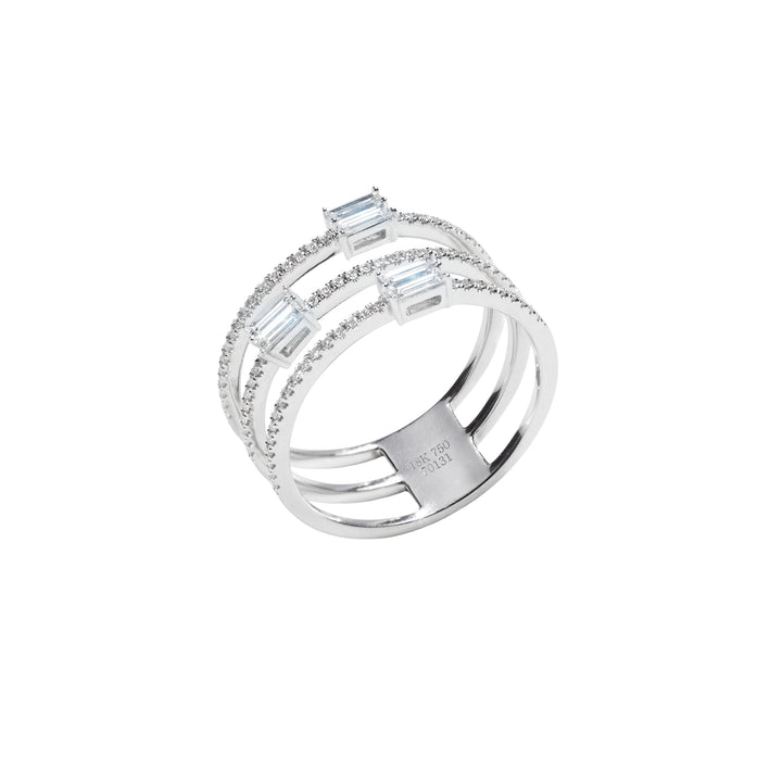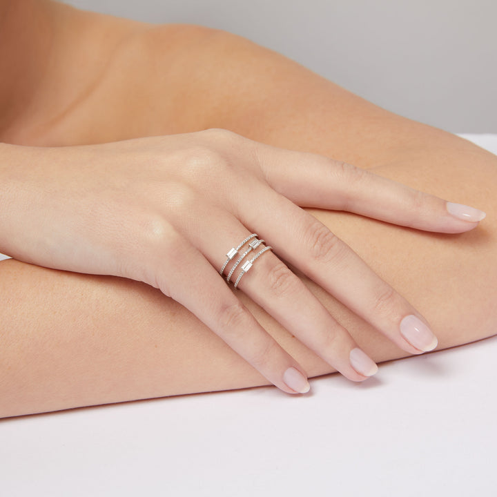 Drei Lieben, ein Statement. THREE-LOVES kombiniert klare Linien mit emotionaler Tiefe – drei Baguette-Diamanten (0,25 ct, TW-SI) im Zentrum, eingerahmt von funkelnden Brillanten (0,16 ct, TW-SI). Das moderne Design strahlt trotz seiner Raffinesse eine überraschende Leichtigkeit aus – weil Stil nicht schwer wirken muss.